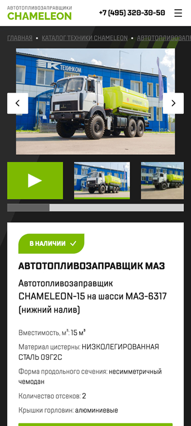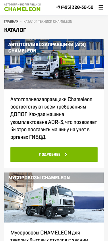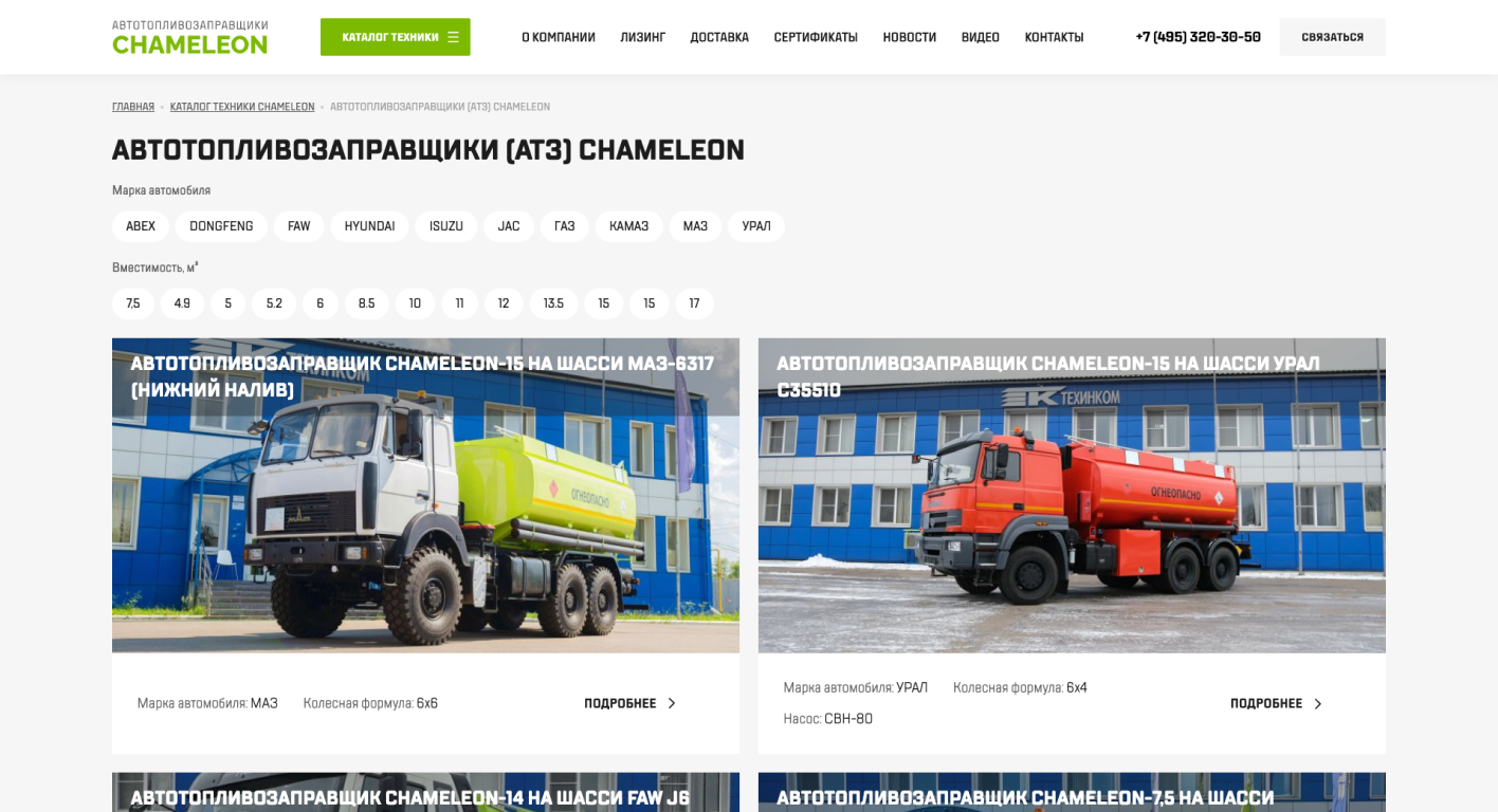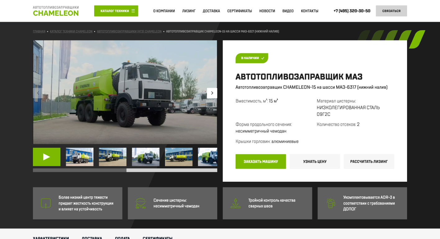 Разработка сайта производителя автотопливозаправщиков и мусоровозов CHAMELEON