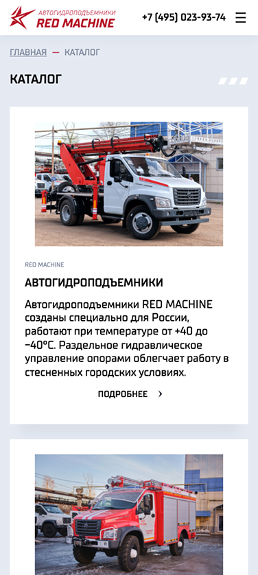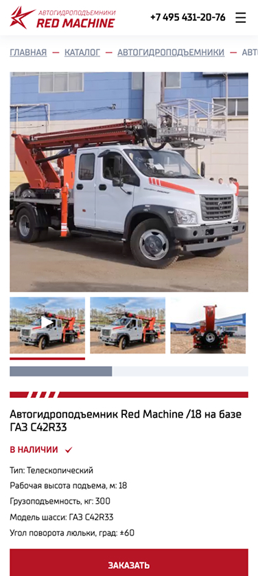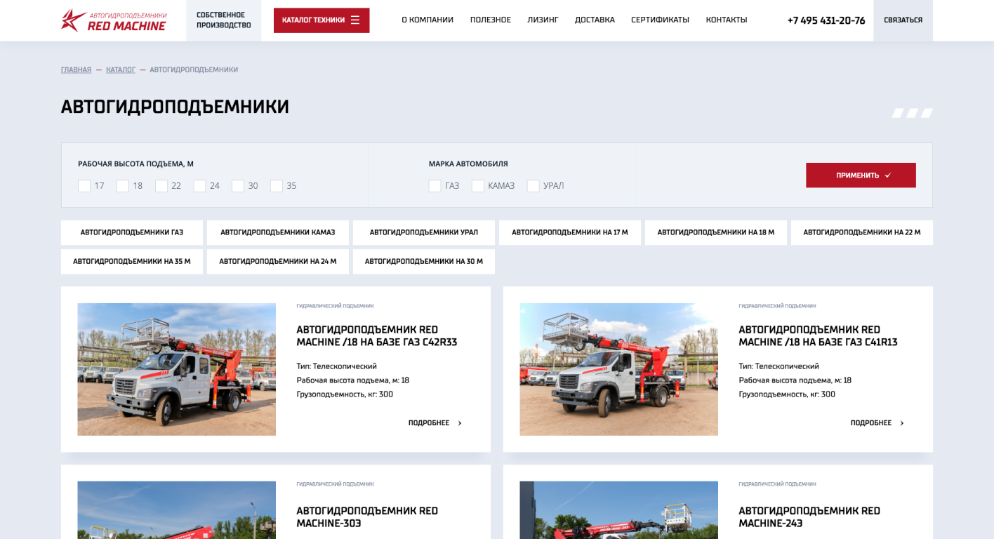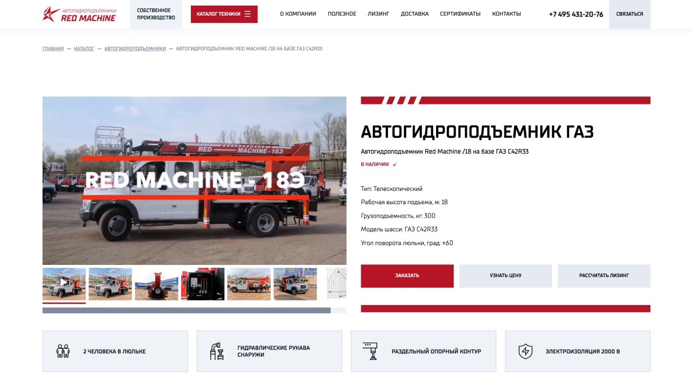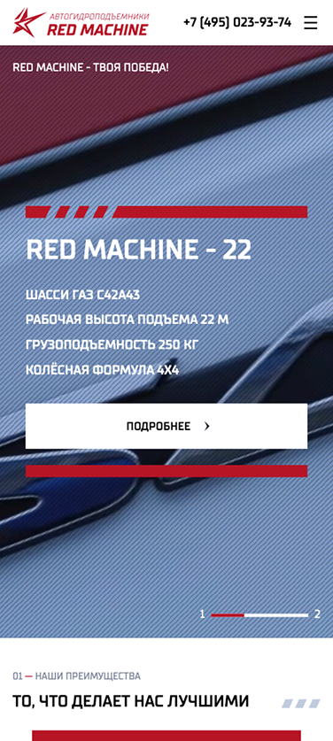 Разработка сайта производителя автогидроподъемников RED MACHINE